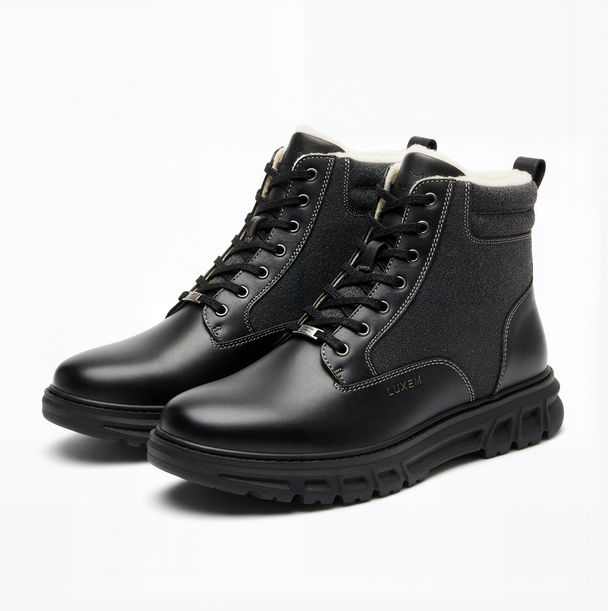 Luxe Black Hybrid Leather Snow Boots