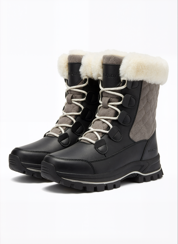 Black & Grey Quilted Fur-Lined Winter Boots