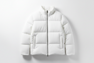 A lightweight yet warm white puffer jacket with a high collar and full front zipper. Softly quilted panels create a streamlined, contemporary winter layer.