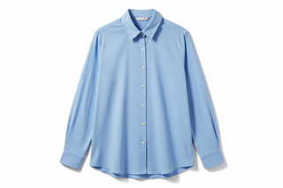 A light blue cotton shirt with structured collar, soft texture, and relaxed fit.