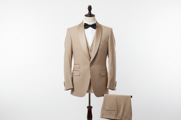 Beige Shawl Lapel Three-Piece Suit