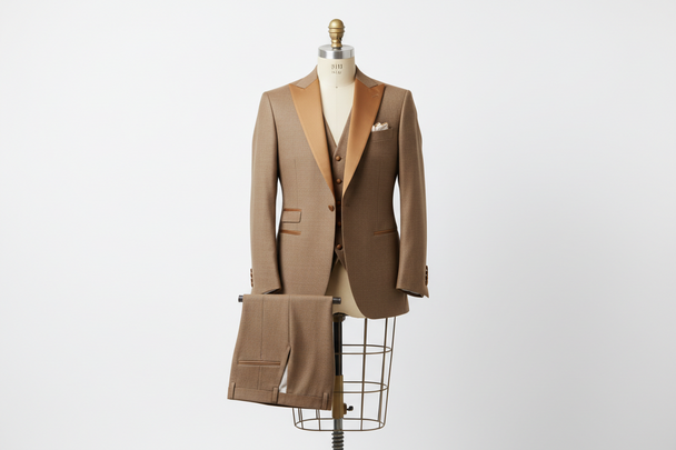 Light Brown Three-Piece Shawl Lapel Suit