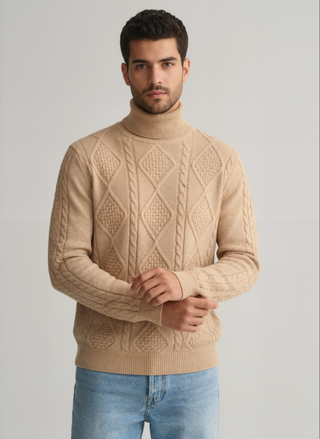 Beige Cable-Knit Turtleneck