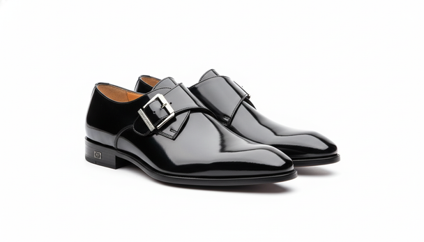 Ordinarie pris $119.99Sleek and high-gloss, these black patent monk strap shoes deliver a bold, luxurious statement. A polished metal buckle and streamlined design enhance their sophisticated appeal—ideal for tuxedos, black-tie events, and high-formality occasions. -