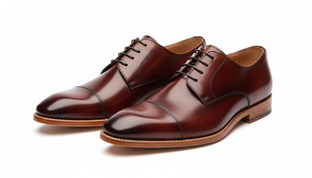 Ordinarie pris $159.99Crafted in rich burnished brown leather, these classic cap-toe Derby shoes offer timeless sophistication with modern comfort. Featuring clean stitching, a smooth rounded silhouette, and a durable stacked sole, they are perfect for business attire, weddings,... -