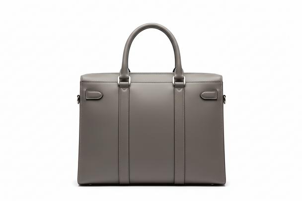 Ordinarie pris $130.00A refined grey leather briefcase with a clean, structured shape and silver accents. Perfect for executives and men with a professional, understated style. -