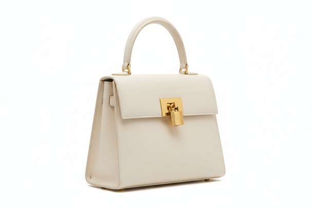 Ivory Structured Top-Handle Bag (Gold Hardware)