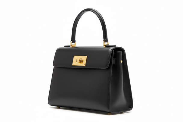 Black Structured Luxury Top-Handle Bag (Gold Hardware)