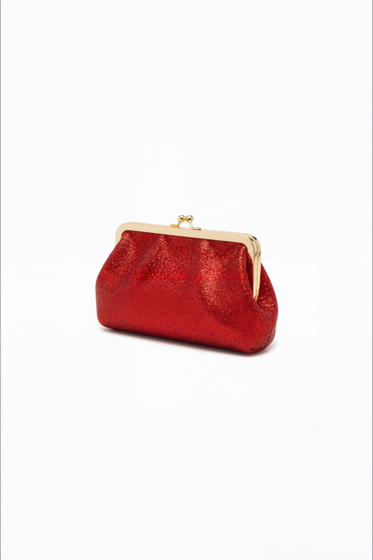 Designed for dazzling entrances, this elongated evening clutch features a glittered scarlet finish and a sleek gold rectangular frame. The gathered texture enhances its luxurious presence, making it a statement piece for galas, weddings, and high-glam...Ordinarie pris $64.99 -