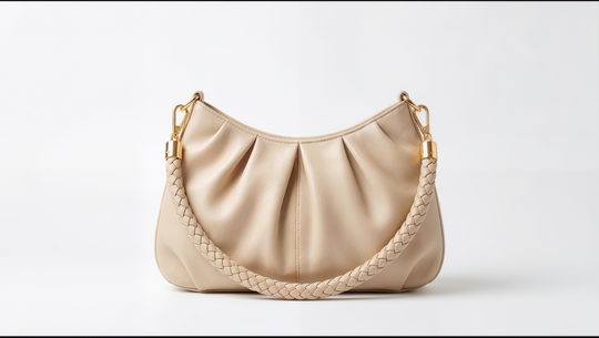 Serenity Pleated Shoulder Bag in Soft Beige