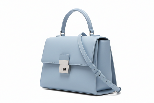 Light Blue Structured Shoulder Bag (Silver Hardware)