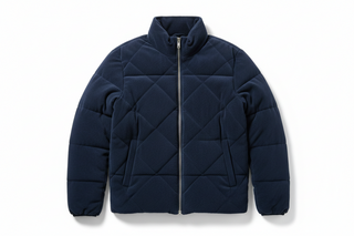 A navy fleece puffer jacket with diamond-quilt stitching and a cozy, insulating feel. Ideal for casual winter wear with added warmth and flexibility.