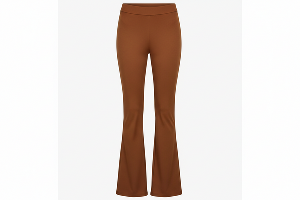 Ordinarie pris $69.99Brown high-waisted flare pants with smooth stretch fabric and a sleek silhouette. -
