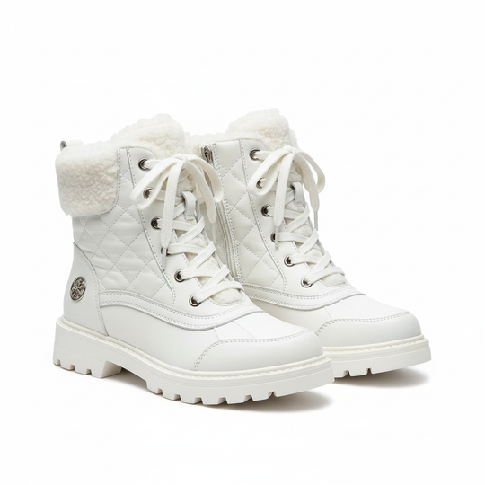 White Quilted Faux-Fur Winter Boots