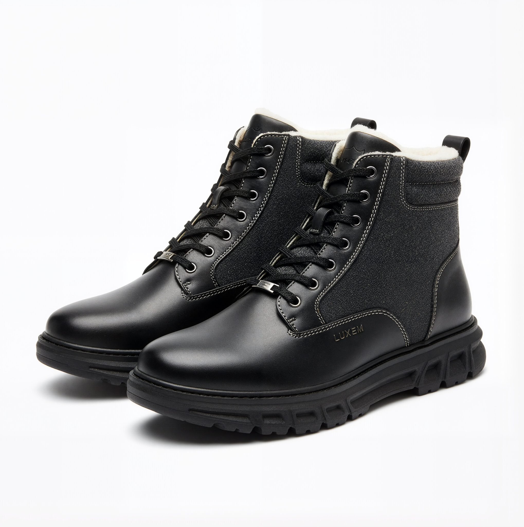 A premium blend of style and durability, these boots feature a smooth leather toe cap paired with textured side panels. The shearling-inspired inner lining keeps feet warm in winter climates, while the thick traction sole enhances stability on slippery surfaces.